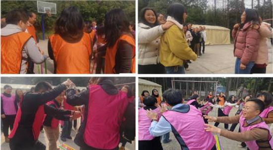 接着,趣味活动正式拉开帷幕。告别三尺讲台,女教师们瞬间切换至“活力模式”,在户外场地上,“环形共进”、“同心守柱”、“同声筑梦”等趣味游戏火热进行。各项目兼具趣味性与协作性,既考验队员间的默契配合,也锻炼团队协作能力。比赛现场,女职工们精神抖擞、奋勇争先,呐喊声、欢笑声此起彼伏,充分展现出我院女教职工昂扬向上、团结协作的巾帼风采。