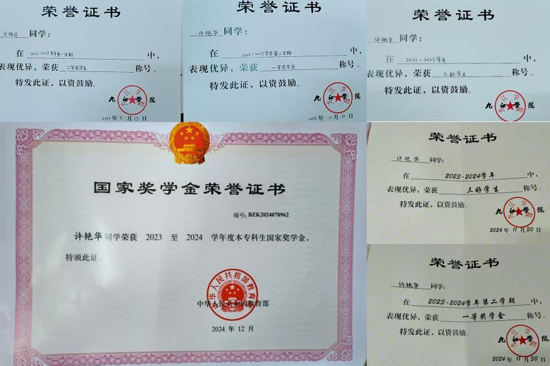 出身于平凡家庭,许艳华深知知识改变命运的道理,在学业道路上不断攀登。在学习方面,她勤奋刻苦,成绩优异,凭借优异的综合表现,多次荣获校级奖学金及“三好学生”称号,先后荣获国家奖学金和国家励志奖学金。与此同时主动提升自身综合能力,顺利通过普通话、计算机二级等多项等级考试。在科研方面,她积极加入科研团队,刻苦钻研,主动参加学术会议学习,并参与一篇EI期刊论文的发表。