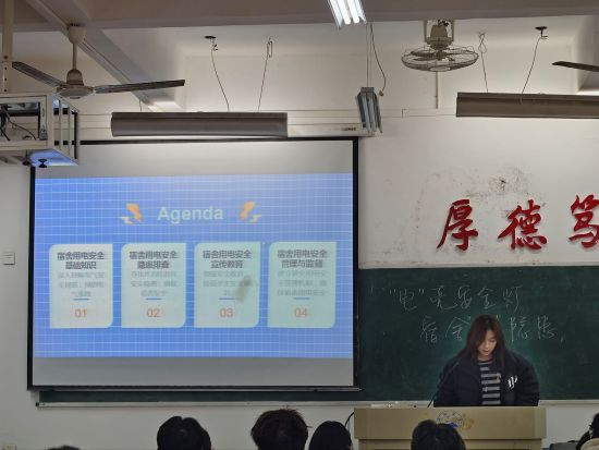 为强化同学们宿舍用电安全意识,筑牢校园安全防线,12月4日,计算机与大数据科学学院于文友楼开展“‘电’亮安全灯,宿舍‘零’隐患”主题班会活动。此次活动由班级团支书主持,围绕宿舍用电安全展开讲解。