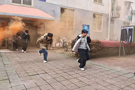 随着负责人下达口令,模拟浓烟迅速充斥宿舍走廊,各楼层学生立即启动应急响应,弯腰捂住口鼻,沿疏散指示标识快速撤离。宿舍管理员与值班教师坚守楼梯口、转角处引导秩序,避免拥挤踩踏。仅用时三分钟,宿舍楼学生全部安全疏散至楼下安全集结点,各寝室长迅速完成人数清点并上报,整个过程紧张有序,充分展现了学生良好的应急反应能力。